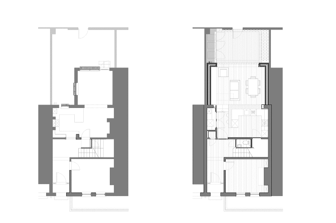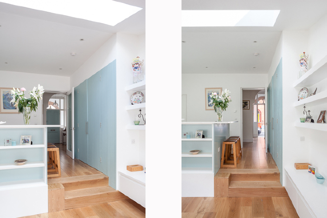 This project involved a full refurbishment of an Edwardian terraced house - updating services, reconfiguring the layout, attic conversion - and new extension to rear. The main house is treated sensitively, in keeping with the period of the house, while the extension is treated in a more contemporary manner. The extension provides a new kitchen and living space that is light filled, benefiting from the existing high ceilings, the rooflight and a zinc clad, 'butterfly' roof. The rear patio is newly landscaped and opened up through double sliding doors to the rear.